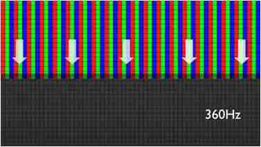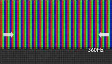 传统液晶驱动是从左到右单向进行,,,在画面更新速度愈来越愈快的情况下,,,,位于驱动线路末端的右下角区域,,画素的闸极来不及在短时间内获得足够电压,,,,无法显示出正确的颜色资讯。。。。